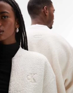 Calvin Klein Jeans Unisex Sherpa Bomber Jacket In Off White – ASOS Exclusive For Unisex Ivory