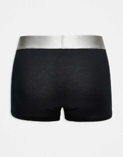 Calvin Klein Steel 3 Pack Trunk With Coloured Logo Waistband In Black For Men