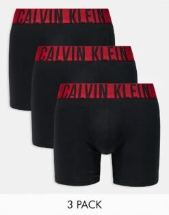 Calvin Klein Intense Power 3 Pack Boxer Brief With Red Logo Waistband In Black For Men