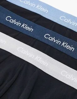Calvin Klein Cotton Stretch 3 Pack Low Rise Trunk With Coloured Waistband In Black For Men