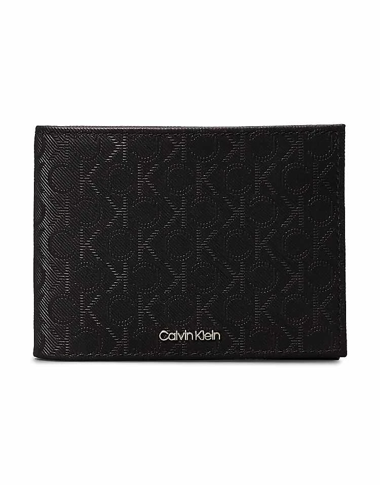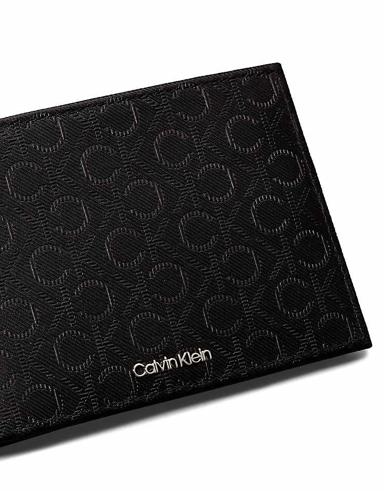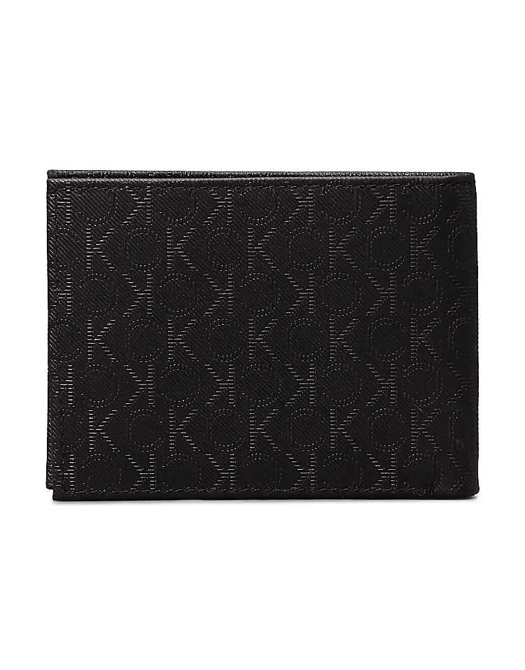 Calvin Klein Logo Leather Billfold Wallet In Twill Mono Black For Men