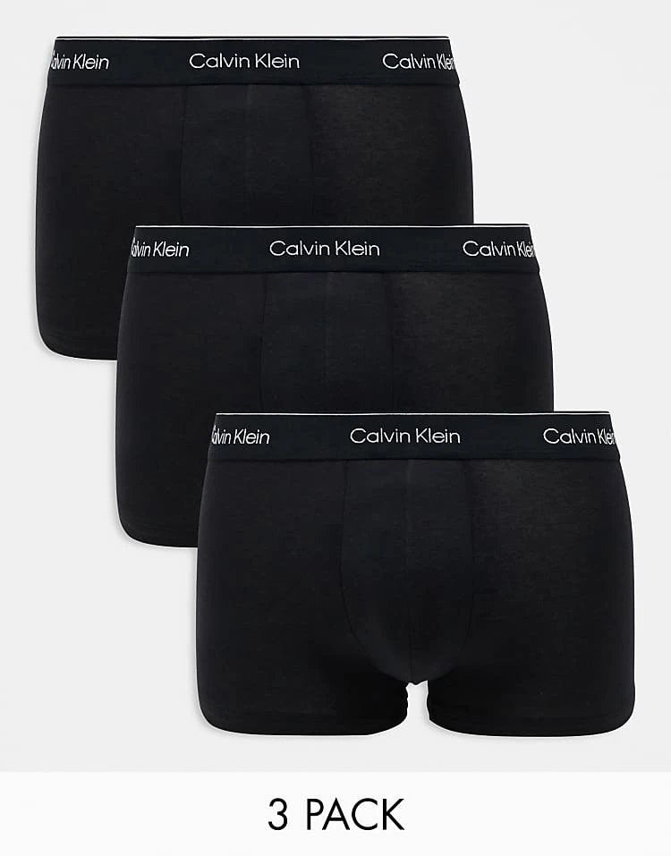 Calvin Klein Modern Cotton 3 Pack Trunk With Black Waistband In Black For Men